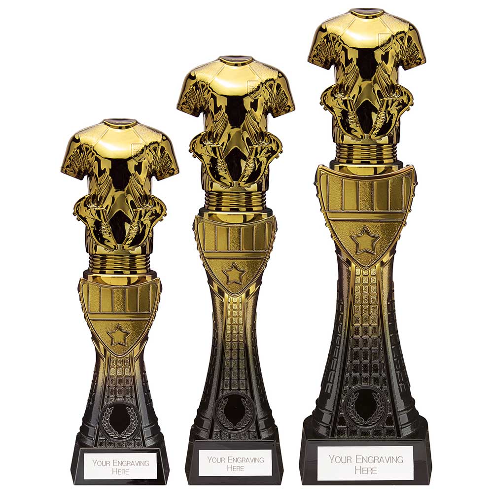 At Trophy Supermarket our Football collection has a wide range of trophies which can celebrate individual success, from a Golden Boot, Clubman, Man Of The Match, Top Goal Scorer or Most Improved, there’s an Individual Player award for all your club’s members. We also provide a variety of options for a Team Presentation Ceremony or a Sports Tournament. Now with free plate engraving.